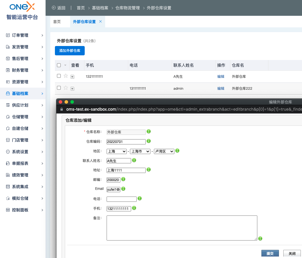 操作路径:【基础档案】—【仓库物流管理】—【外部仓库设置】