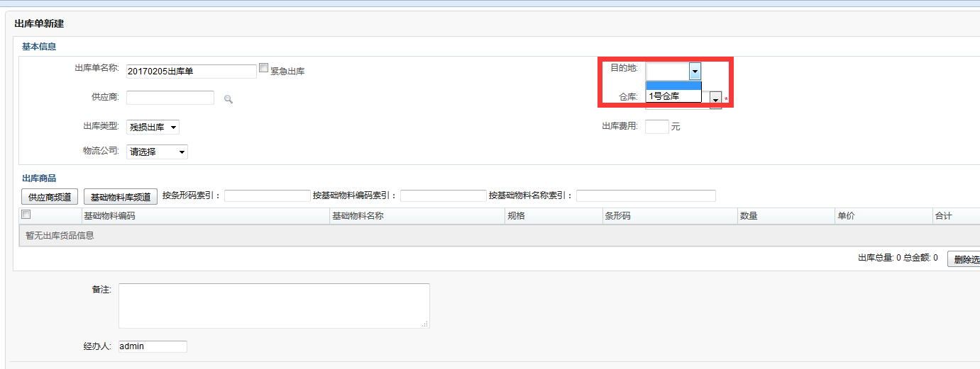 2、这里的外部仓库实际不管控货品的库存,只是标记一个来源或者目的地