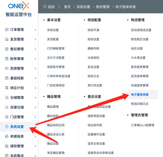 功能及作用:添加电子面单来源是用于获取物流公司对应各种平台的物流单号