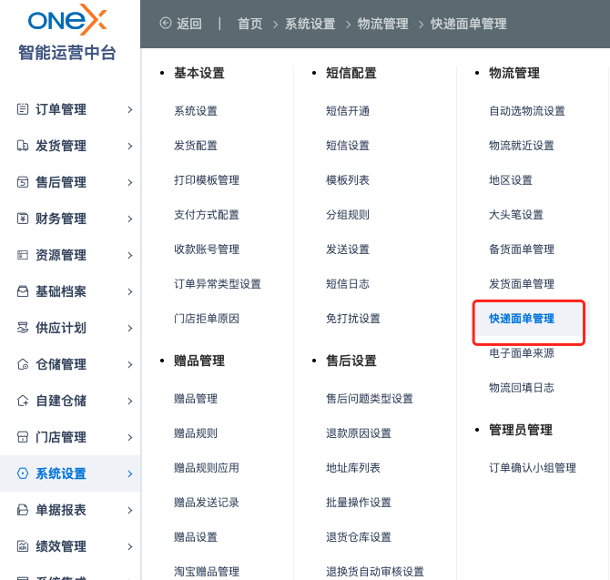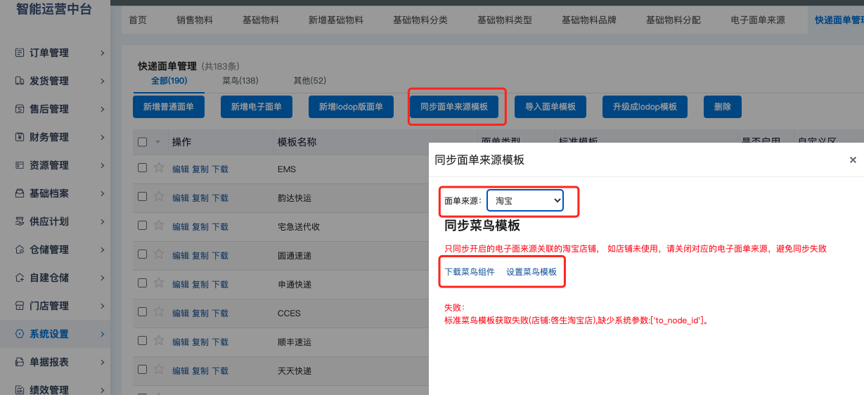- 操作路径:系统--快递面单管理--同步面单来源模板