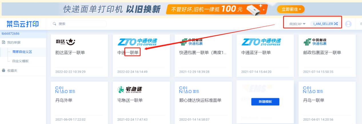 选择SELLER-商派ERP-模板列表选择一联单模板