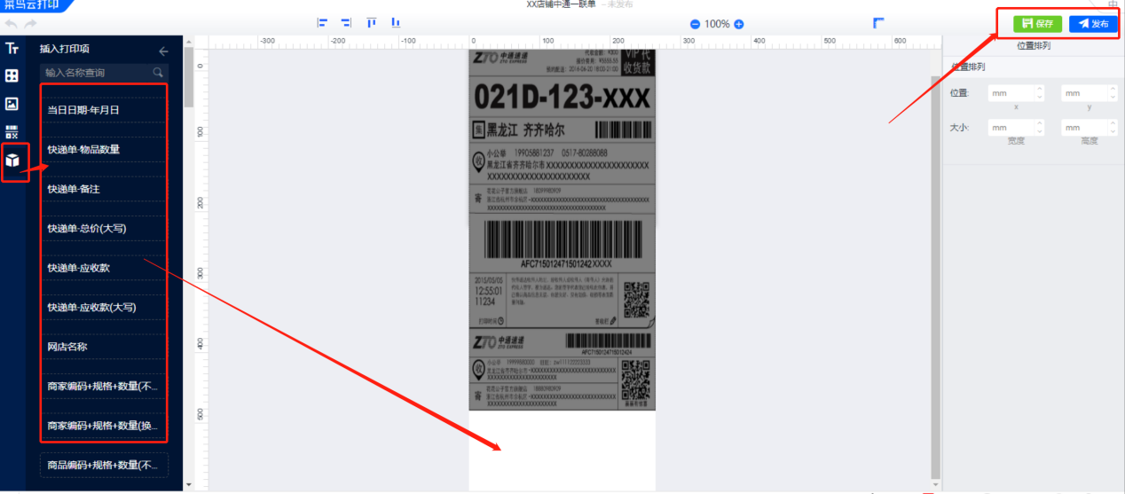 左边可选择打印快递面单的打印项内容,设置完成,保存并发布。发布成功后,再到OMS里再次发起同步。
