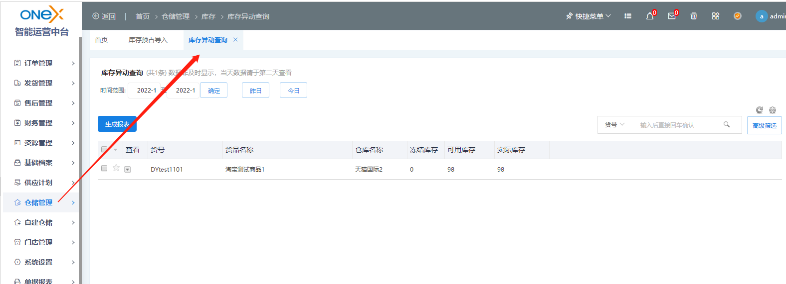 操作路径:【仓储管理】—【货品流水】—【货品预占流水】