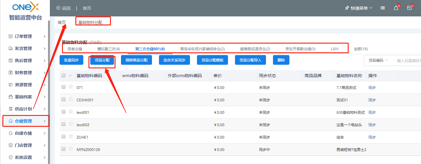 1、可进行发货仓与备货仓之间的关联关系的绑定设置