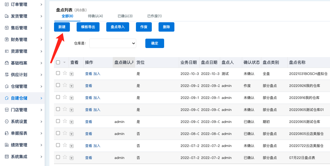 操作路径:【自建仓储】—【盘点管理】—【盘点】