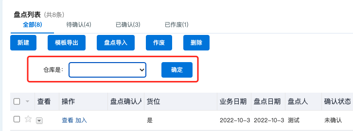 - 系统在“盘点列表”中增加了“仓库”的快捷查询,一般盘点时针对的是某个确认的仓库。