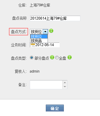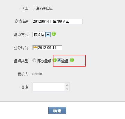 - 全盘方式:当进行“全盘”时,没有盘点到的货品,在对应的仓库中将进行清零。