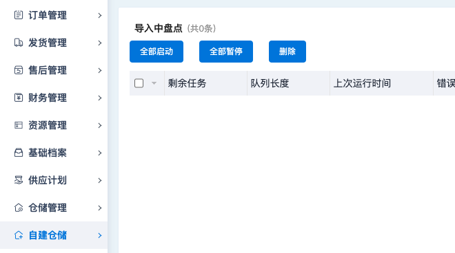 功能说明:此盘点针对自建仓储的盘点,不涉及第三方仓盘点
