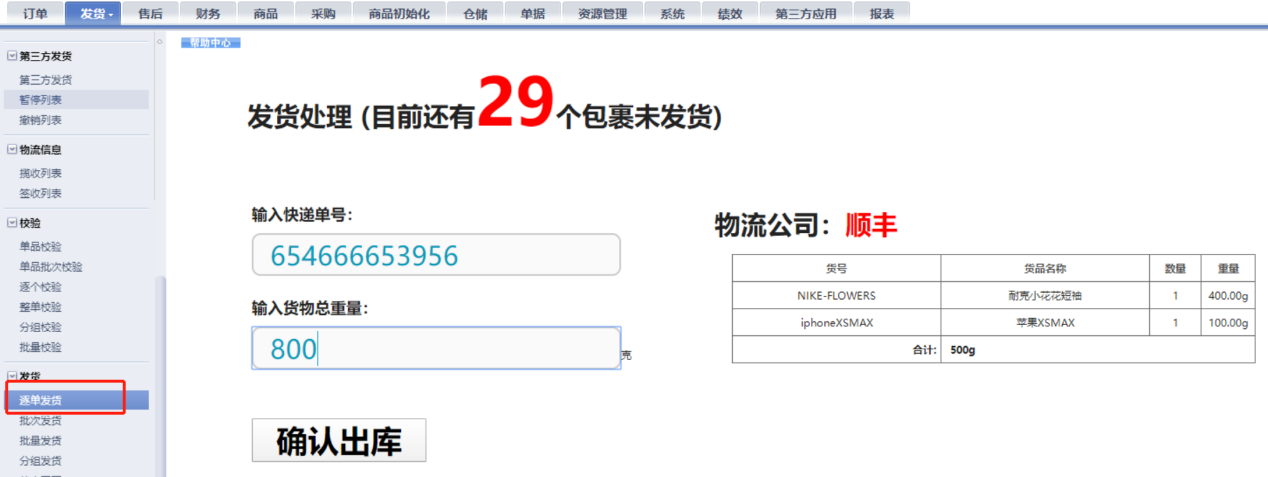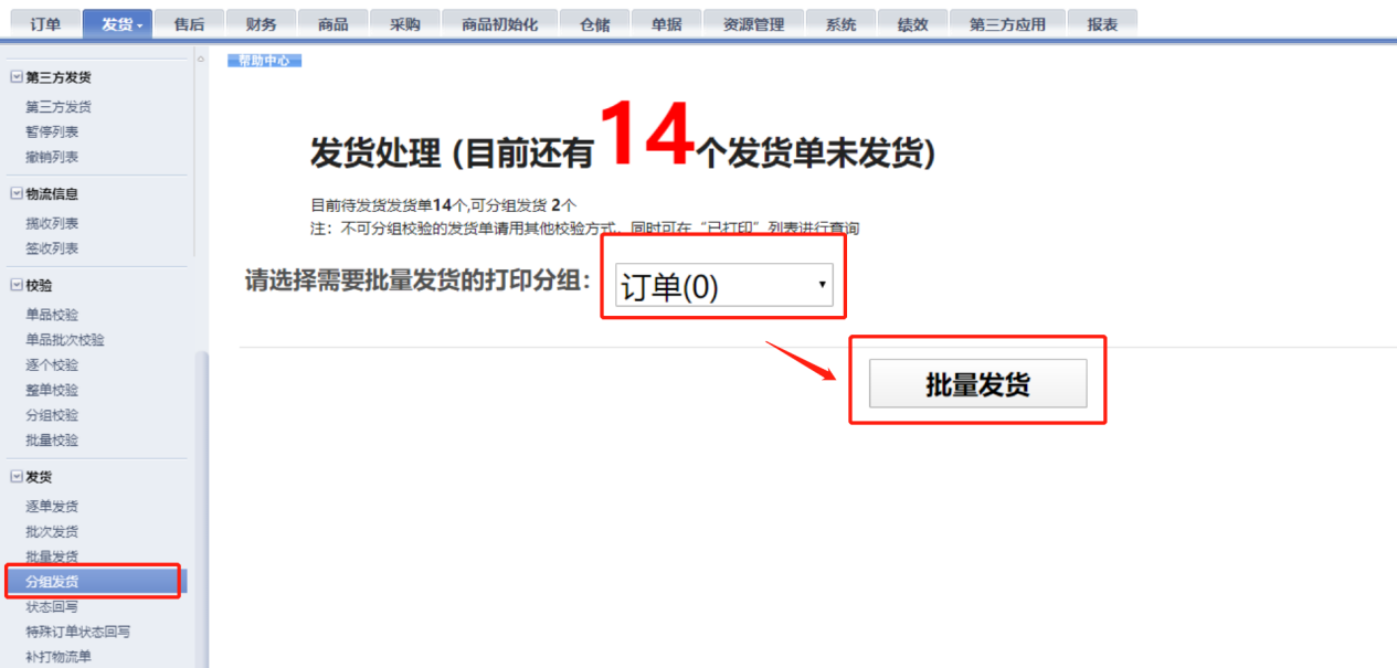 - 分组发货:把已校验且可发货的发货单变成已发货的状态。