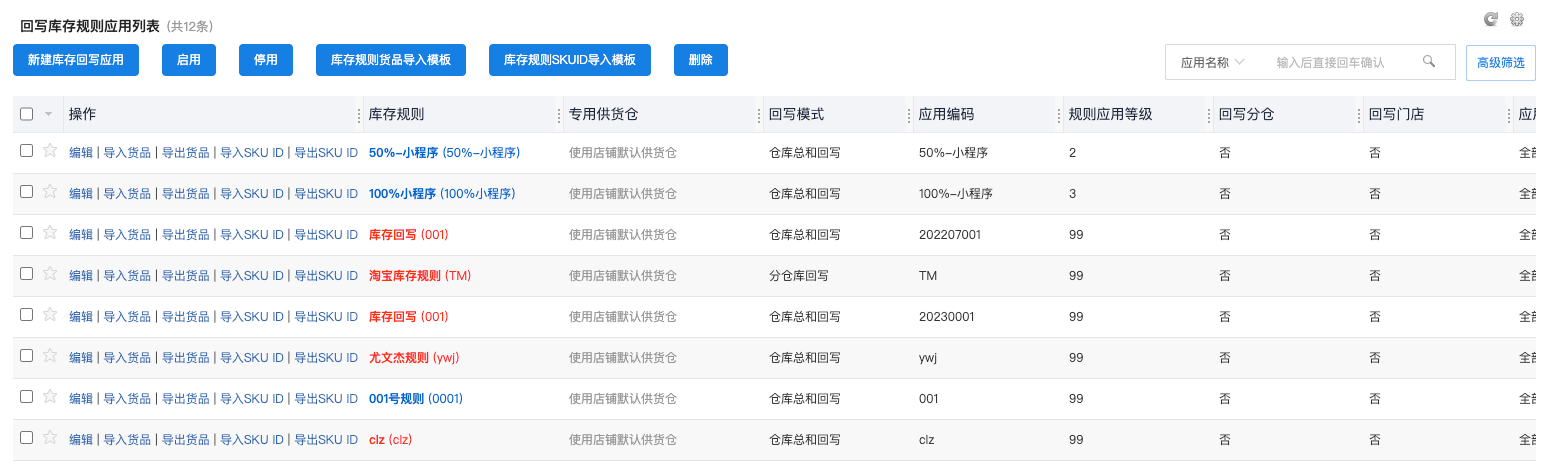 - 规则应用一但修改并保存,规则应用的状态自动变为停用,需手工开启。