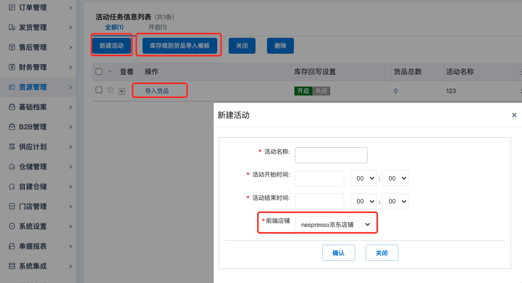 操作路径:【资源管理】—【在售库存管理】—【库存管理】