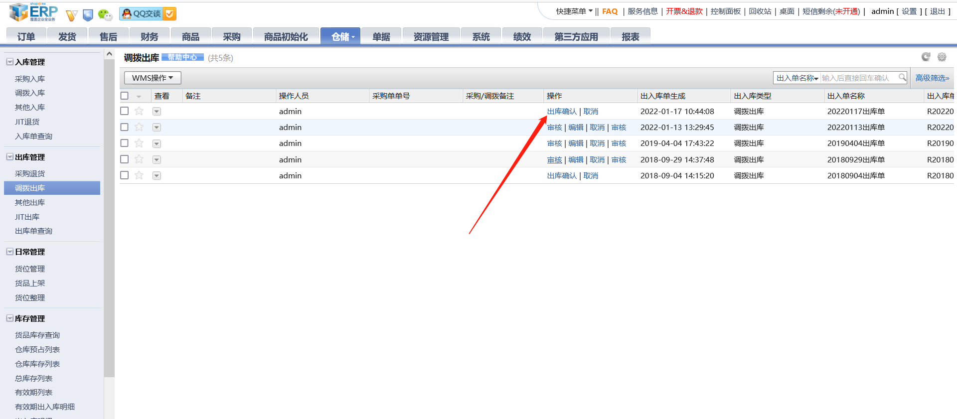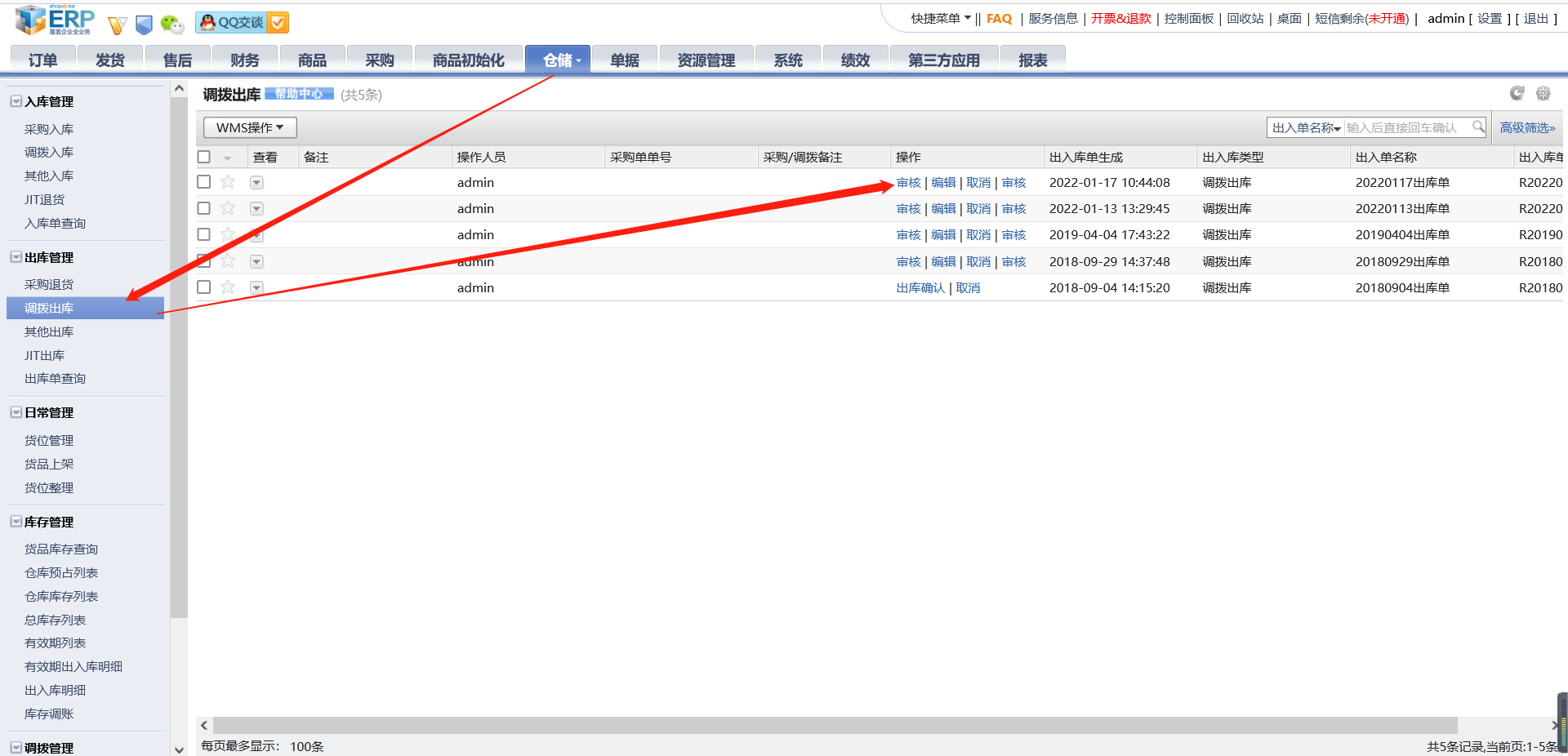 出入库调拨:需要仓库管理员做出入库审核确认,一般适用于两地仓库间的调拨
