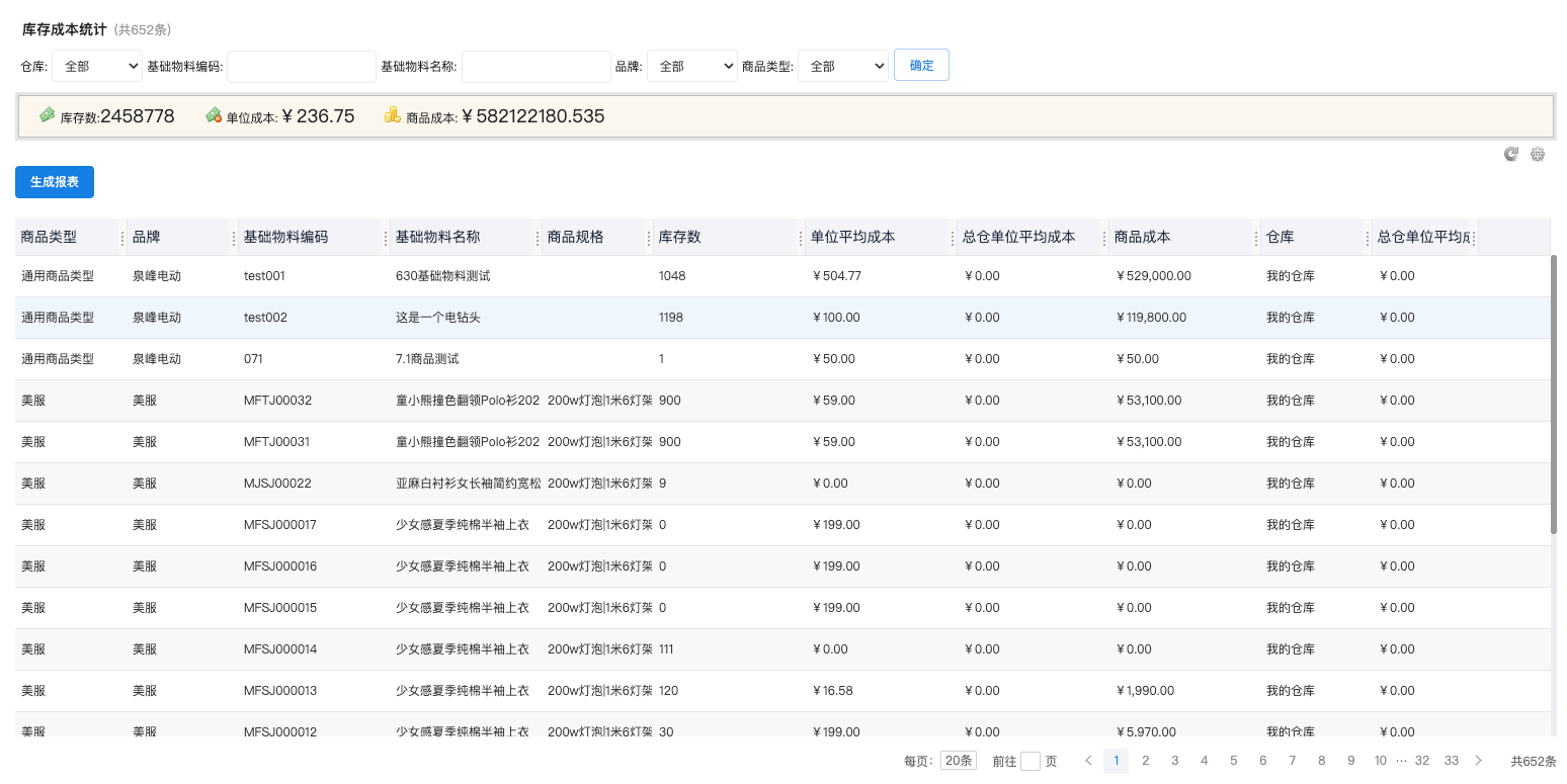 按照企业每日进销存的角度,加入成本体系。从而知道每日或者期间段内,库存的进、出、结余 等情况。结合成本,并且知道成本的消耗、增加情况。更加精准的知道库存资金动向。一般是按照企业的结转时间来统计,通过平均成本判断单品的成本是否有走高的趋势(成本计算方式不能为“不计成本”和 “固定成本”)