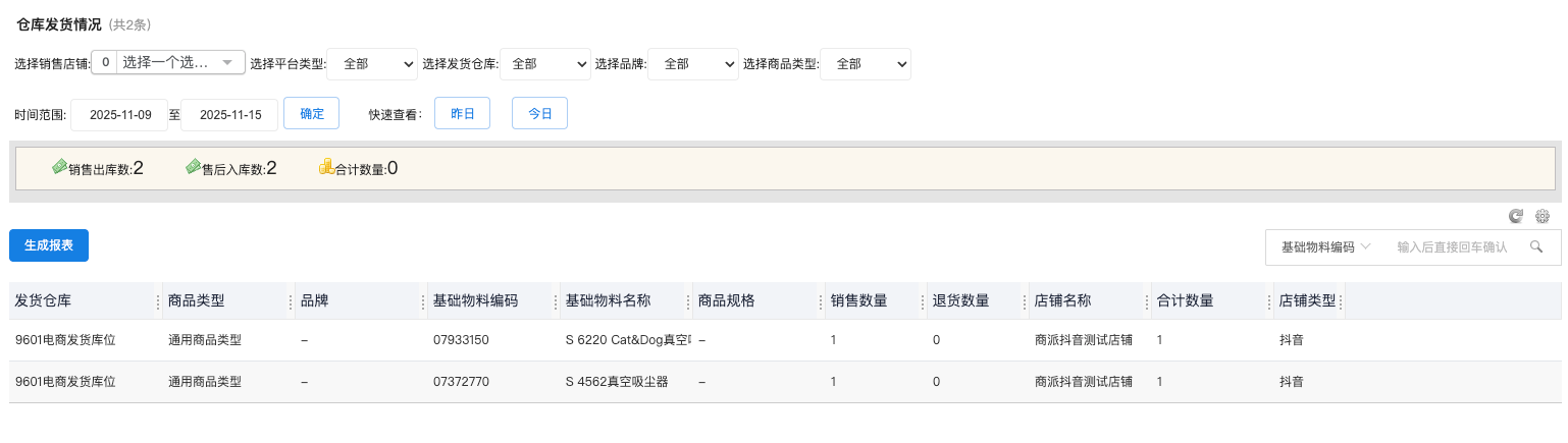 以仓库为维度,记录各仓库发货数量、退换货数量等。以达到“某仓库”给“某店铺”发出何种商品,以及发了多少件。