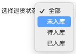 选择未入库,点击“确定”,即展示出款已退但退货未入库的订单。